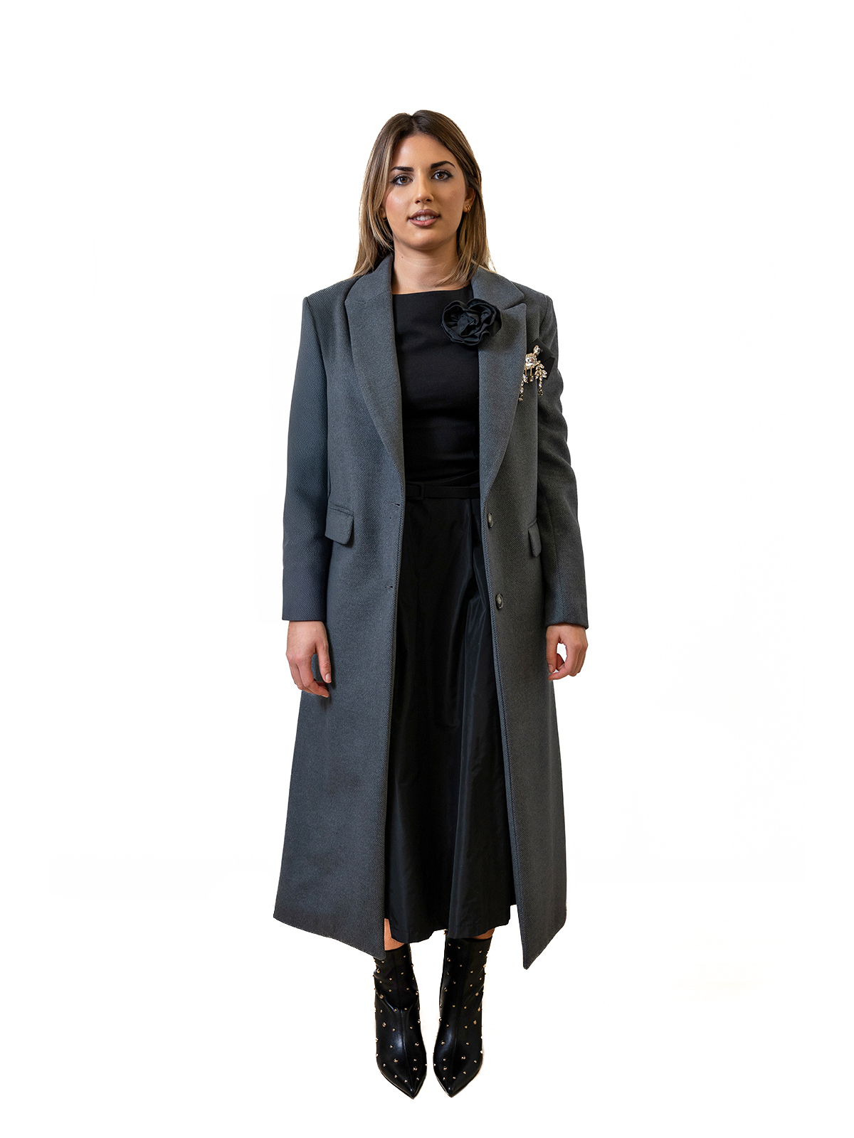 Cappotto lungo con due bottoni e spilla – Dairesy