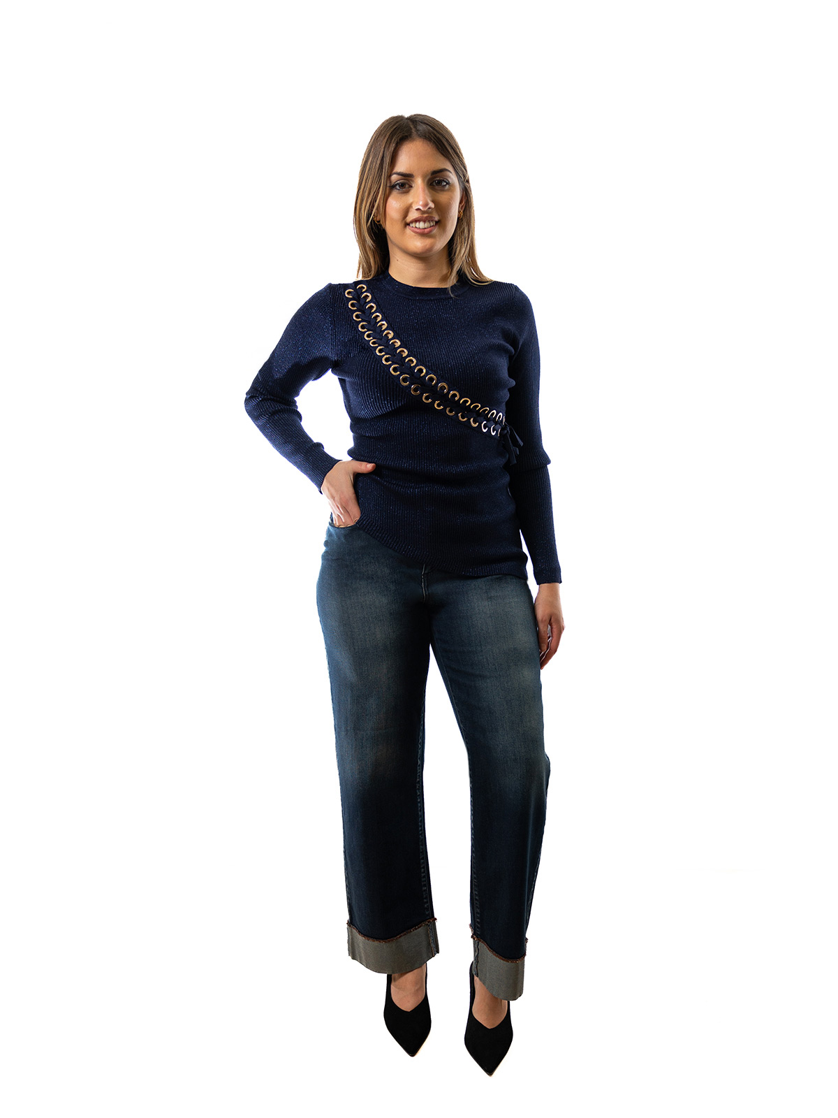 Denim vita alta con risvolto e cintura gioiello – Trash and Luxury