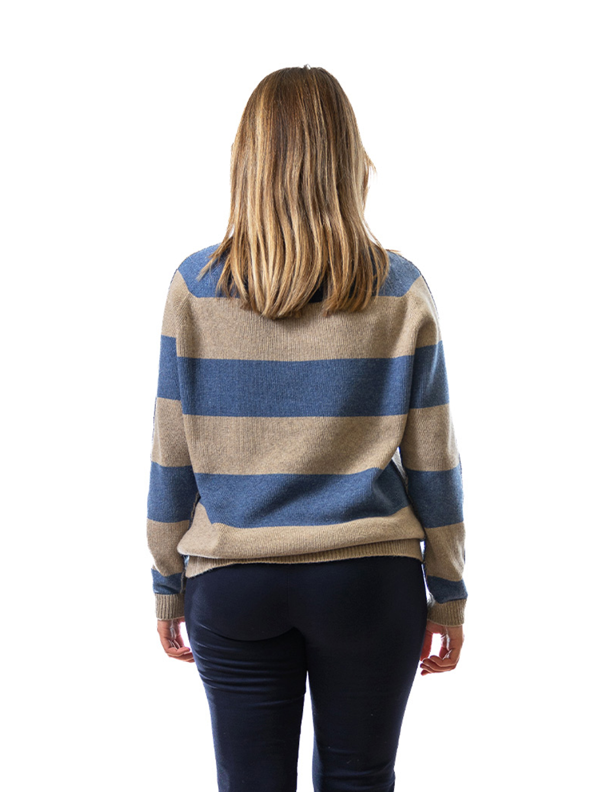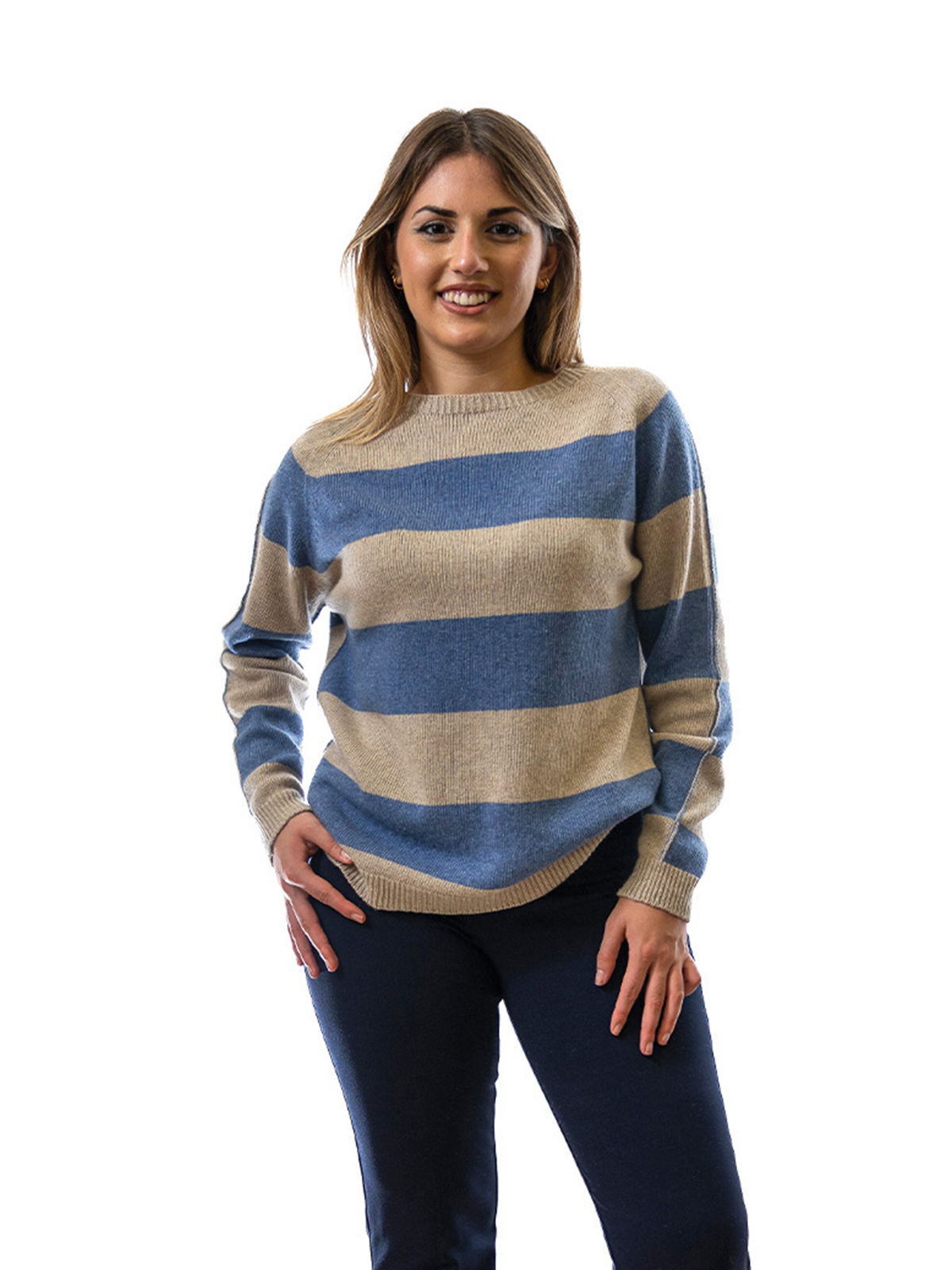 Scopri la nostra maglia bicolore mastice/denim in morbido misto cashmere, perfetta per accompagnarti con stile nel cambio di stagione.
